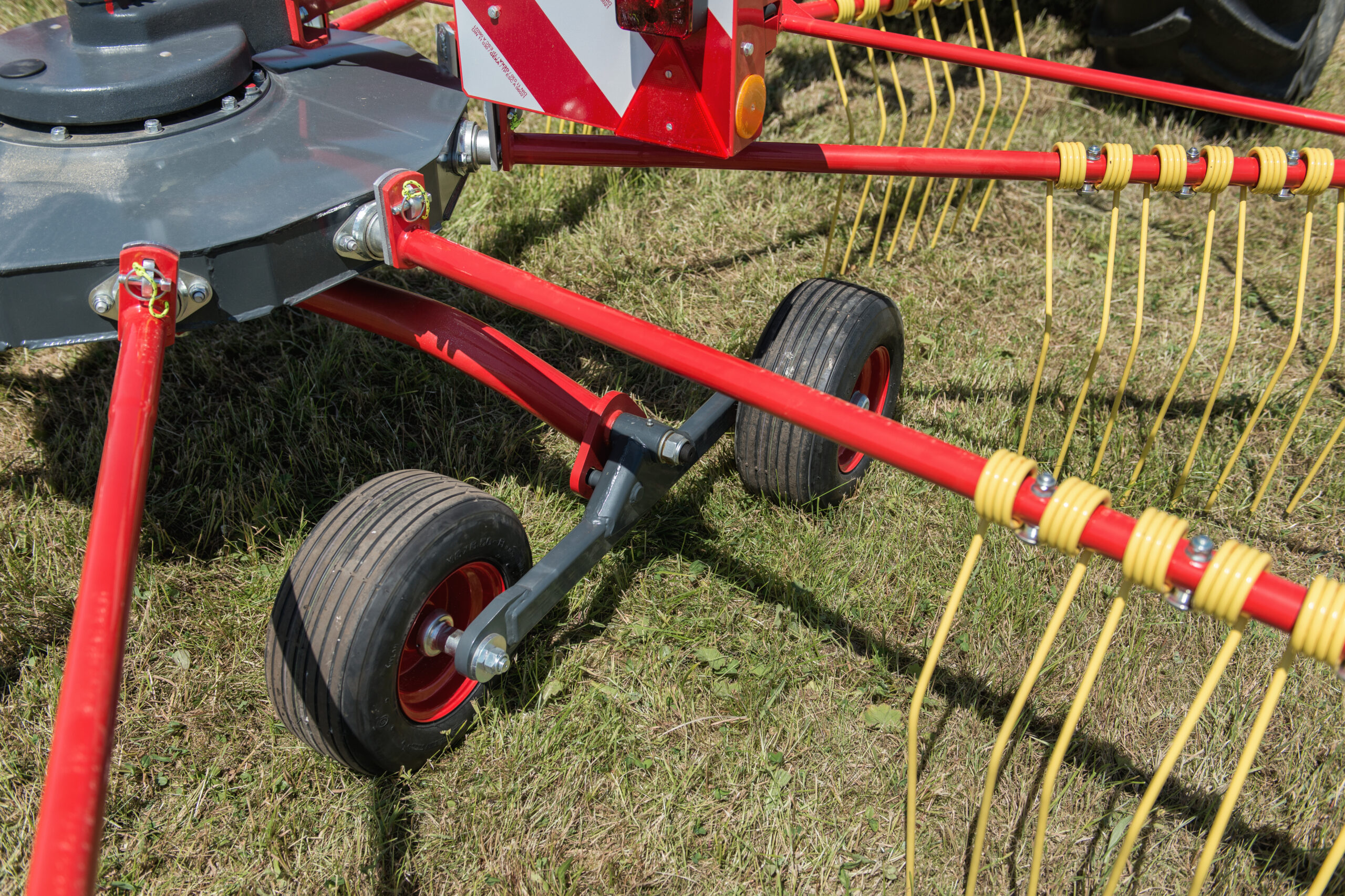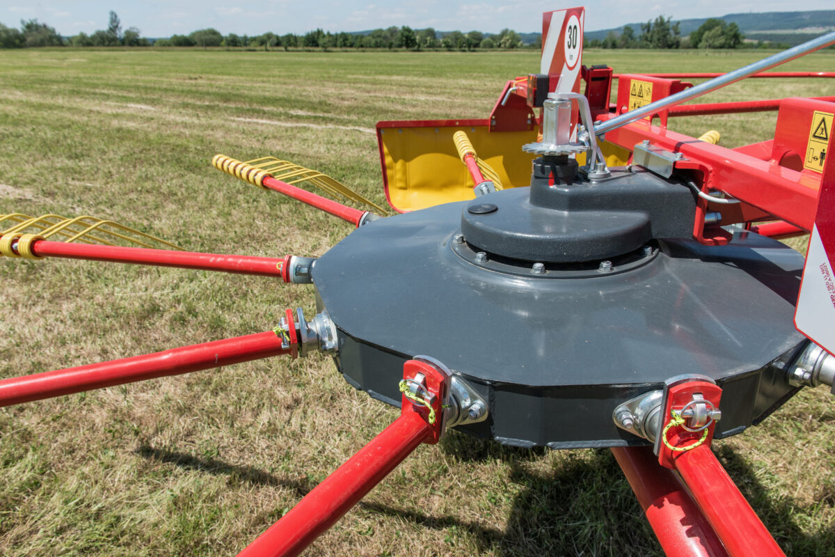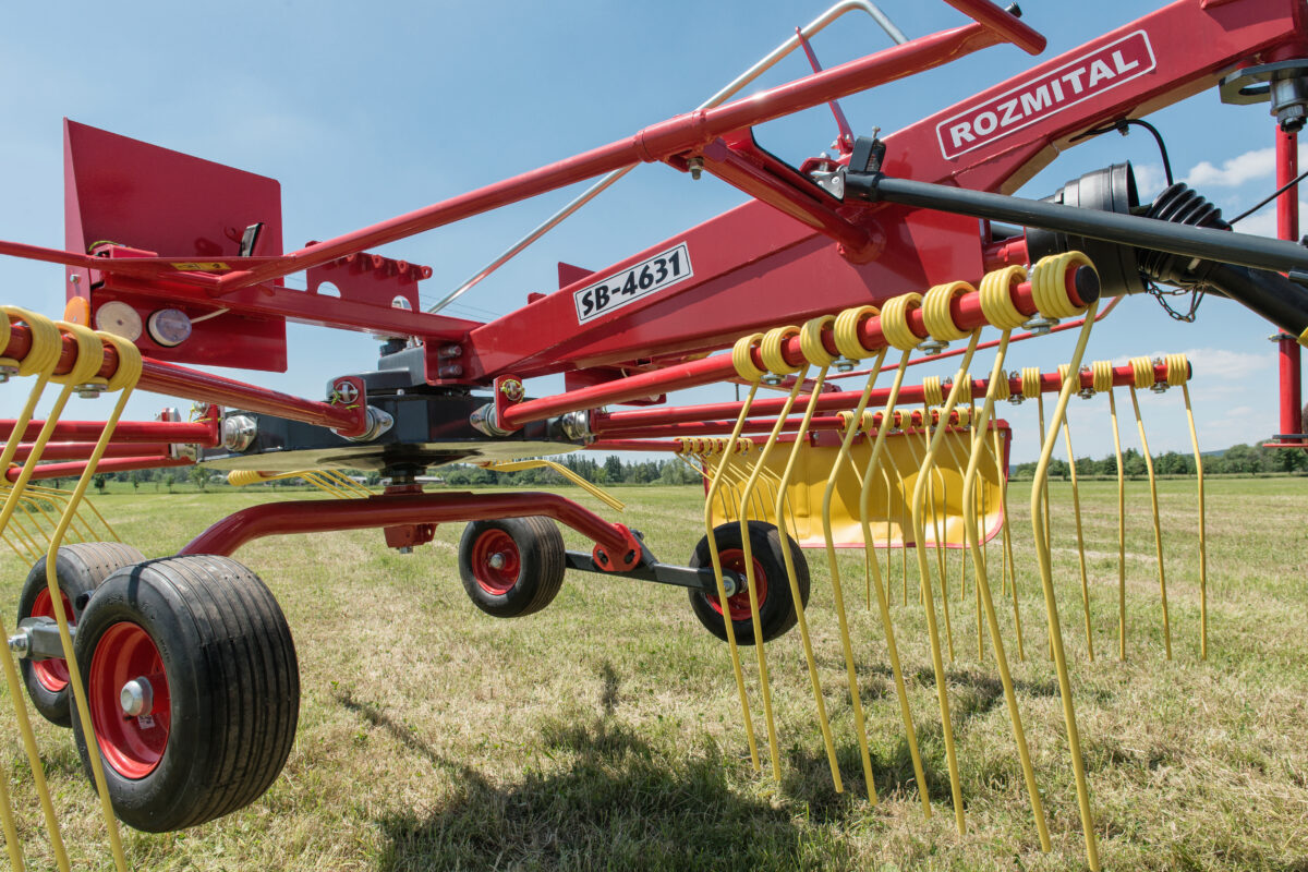 Podvozek rotoru zajišťuje výborné kopírování terénu a šetrnou manipulaci s pícninou