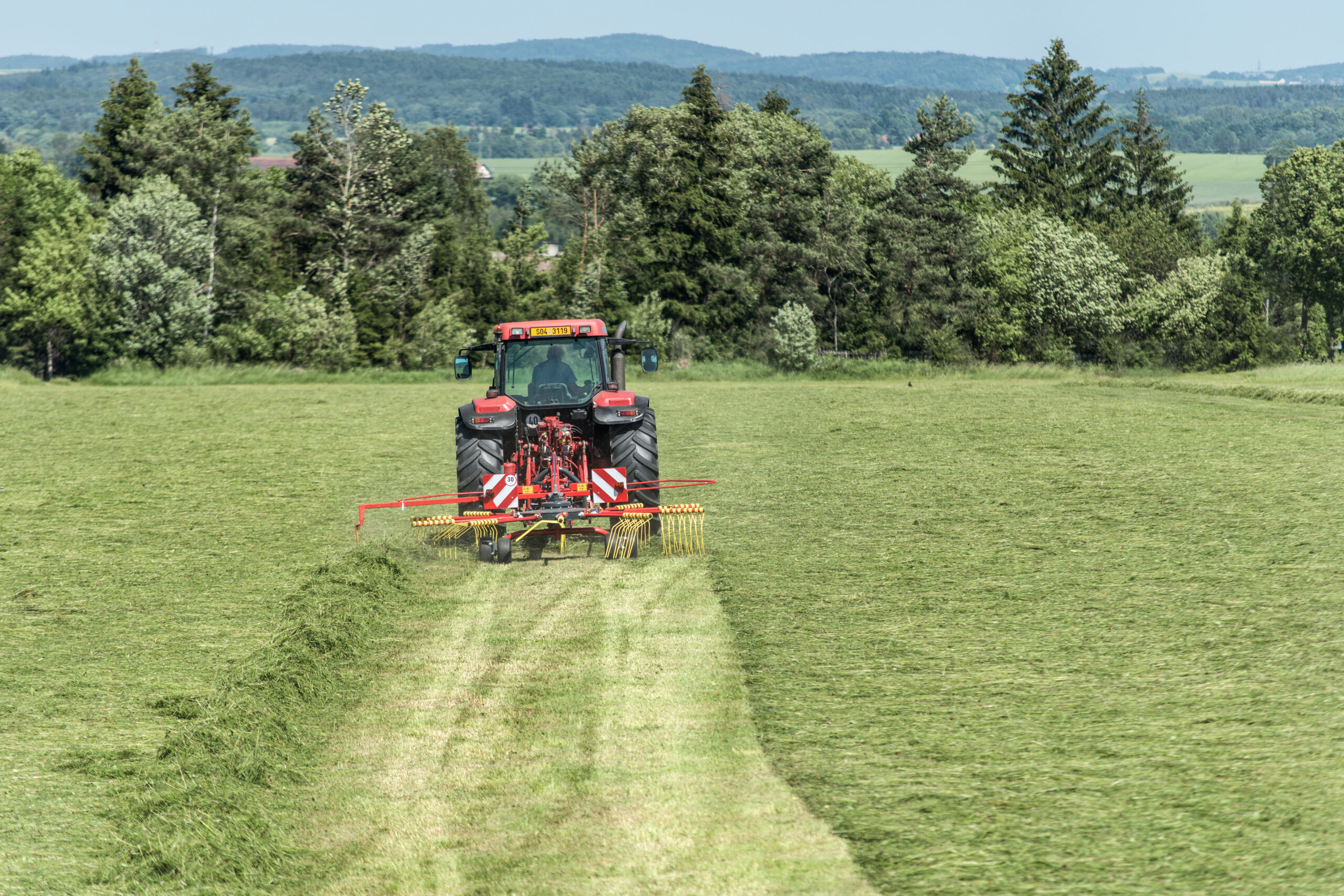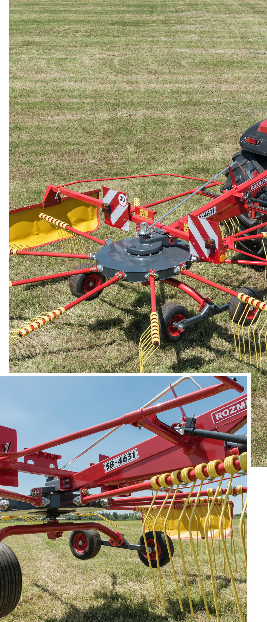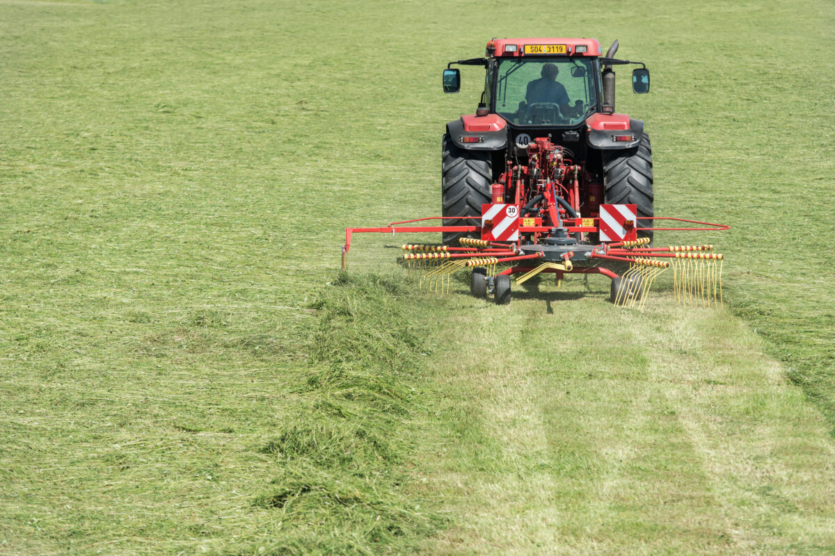 Podvozek rotoru zajišťuje výborné kopírování terénu a šetrnou manipulaci s pícninou